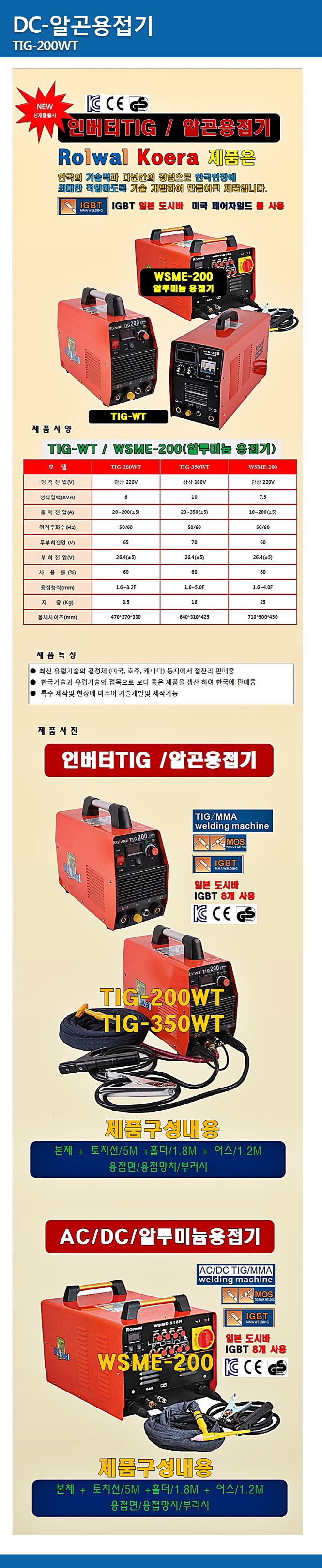 DC ¾Ë°ï¿ëÁ¢±â TIG 200WT